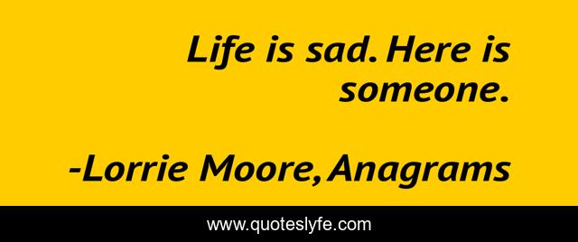 This page presents the quote "Life is sad. Here is someone.". Author of this quote is Lorrie Moore, Anagrams. This quote is about life, lovers,.