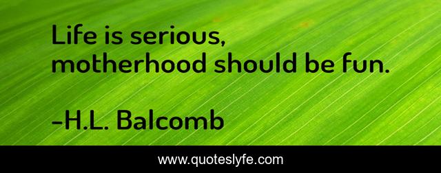 This page presents the quote "Life is serious, motherhood should be fun.". Author of this quote is H.L. Balcomb. This quote is about fun, motherhood, inspire,.