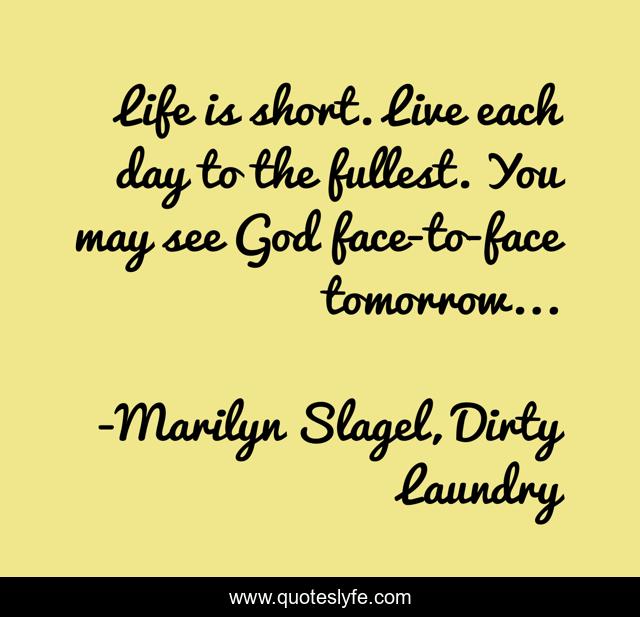This page presents the quote "Life is short. Live each day to the fullest. You may see God face-to-face tomorrow...". Author of this quote is Marilyn Slagel, Dirty Laundry. .