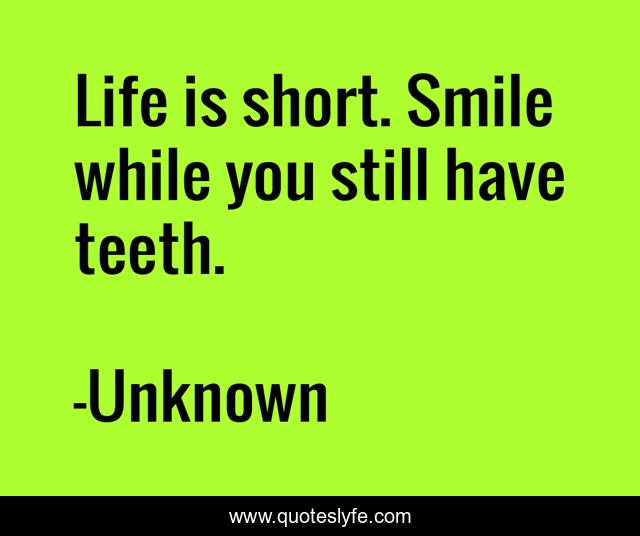 This page presents the quote "Life is short. Smile while you still have teeth.". Author of this quote is Unknown. This quote is about funny, life, comedy, quotes,.