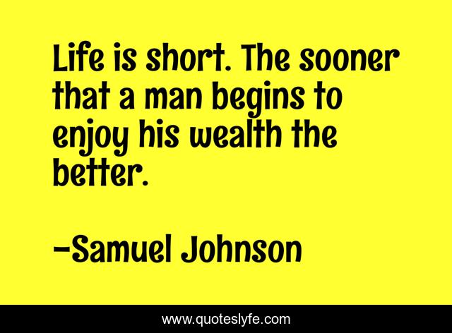 This page presents the quote "Life is short. The sooner that a man begins to enjoy his wealth the better.". Author of this quote is Samuel Johnson. .
