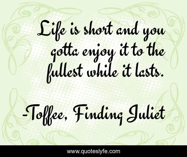 "Toffee, Finding Juliet Quotes." Quoteslyfe.com, 2025. Fri. 05 Dec. 2025. <https://www.quoteslyfe.com/quote/Life-is-short-and-you-gotta-enjoy-38063>.