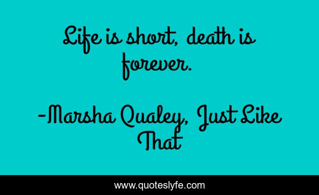 "Marsha Qualey, Just Like That Quotes." Quoteslyfe.com, 2025. Fri. 05 Dec. 2025. <https://www.quoteslyfe.com/quote/Life-is-short-death-is-forever-21889>.