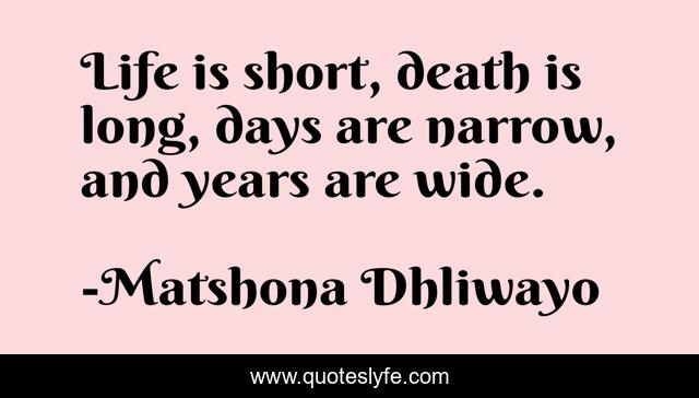 "Matshona Dhliwayo Quotes." Quoteslyfe.com, 2025. Sat. 06 Dec. 2025. <https://www.quoteslyfe.com/quote/Life-is-short-death-is-long-days-57968>.
