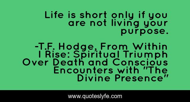 This page presents the quote "Life is short only if you are not living your purpose.". Author of this quote is T.F. Hodge, From Within I Rise: Spiritual Triumph Over Death and Conscious Encounters with "The Divine Presence". This quote is about living, life, quotes, behaviour, intentions, attitude, determination, purpose,.