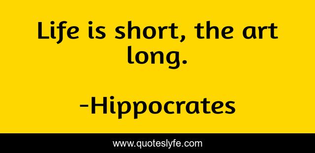 This page presents the quote "Life is short, the art long.". Author of this quote is Hippocrates. This quote is about life, short, life is short,.