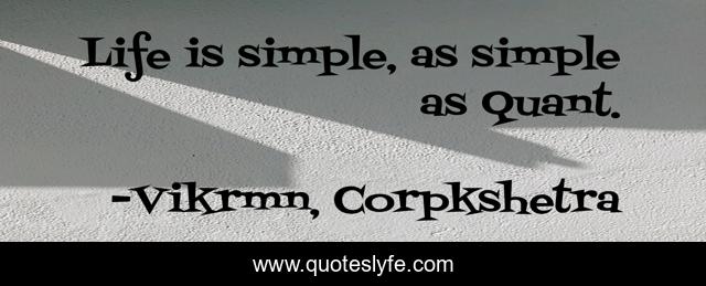 This page presents the quote "Life is simple, as simple as Quant.". Author of this quote is Vikrmn, Corpkshetra. This quote is about corpkshetra, life, vikram, simple, positive, motivational, confidence, ca-vikram-verma, chartered-accountant,.