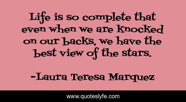 This page presents the quote "Life is so complete that even when we are knocked on our backs, we have the best view of the stars.". Author of this quote is Laura Teresa Marquez. This quote is about life, protection, life-s-goodness, stars,.
