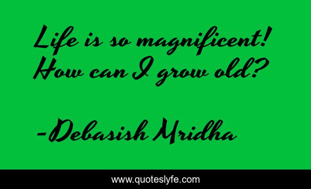 This page presents the quote "Life is so magnificent! How can I grow old?". Author of this quote is Debasish Mridha. This quote is about life, philosophy, debasish-mridha, quotes, life-is-magnificent, debasish-mridha-md, inspirational, enthusiasm, growing-old,.