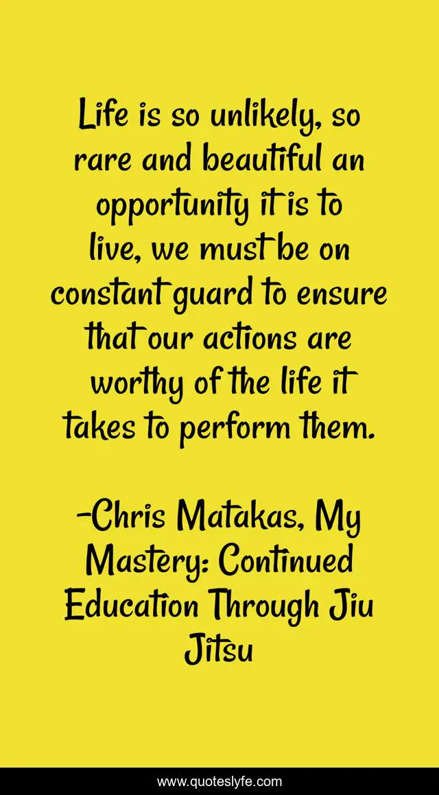 "Chris Matakas, My Mastery: Continued Education Through Jiu Jitsu Quotes." Quoteslyfe.com, 2025. Mon. 08 Dec. 2025. <https://www.quoteslyfe.com/quote/Life-is-so-unlikely-so-rare-and-189167>.
