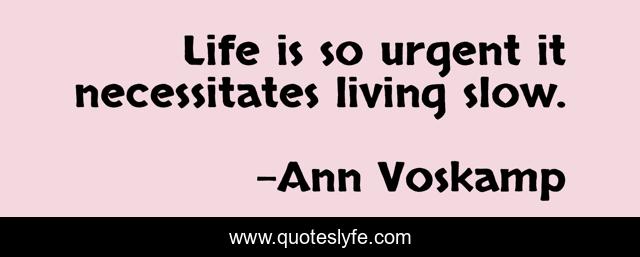"Ann Voskamp Quotes." Quoteslyfe.com, 2025. Tue. 09 Dec. 2025. <https://www.quoteslyfe.com/quote/Life-is-so-urgent-it-necessitates-living-115559>.