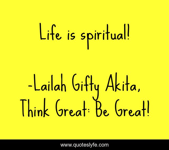 "Lailah Gifty Akita, Think Great: Be Great! Quotes." Quoteslyfe.com, 2025. Sun. 07 Dec. 2025. <https://www.quoteslyfe.com/quote/Life-is-spiritual-95061>.