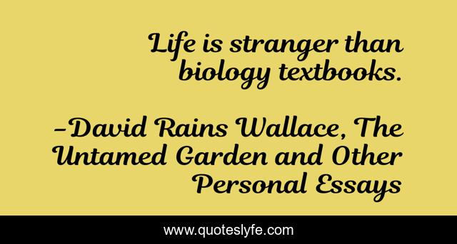 "David Rains Wallace, The Untamed Garden and Other Personal Essays Quotes." Quoteslyfe.com, 2025. Sat. 06 Dec. 2025. <https://www.quoteslyfe.com/quote/Life-is-stranger-than-biology-textbooks-249980>.