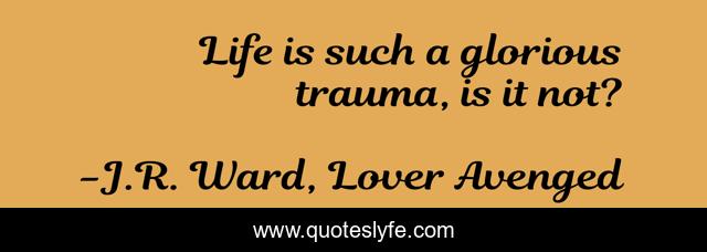 This page presents the quote "Life is such a glorious trauma, is it not?". Author of this quote is J.R. Ward, Lover Avenged. This quote is about life, jr-ward, wrath, black-dagger-brotherhood,.