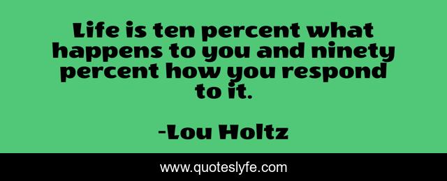 This page presents the quote "Life is ten percent what happens to you and ninety percent how you respond to it.". Author of this quote is Lou Holtz. This quote is about respond, happens,.