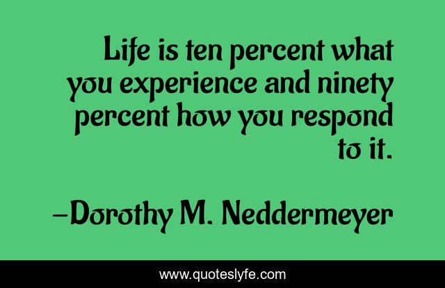 "Dorothy M. Neddermeyer Quotes." Quoteslyfe.com, 2025. Fri. 05 Dec. 2025. <https://www.quoteslyfe.com/quote/Life-is-ten-percent-what-you-experience-113561>.