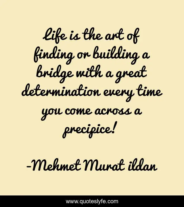 This page presents the quote "Life is the art of finding or building a bridge with a great determination every time you come across a precipice!". Author of this quote is Mehmet Murat ildan. .