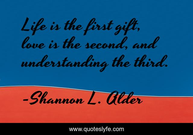 This page presents the quote "Life is the first gift, love is the second, and understanding the third.". Author of this quote is Shannon L. Alder. This quote is about revelation, humility,.
