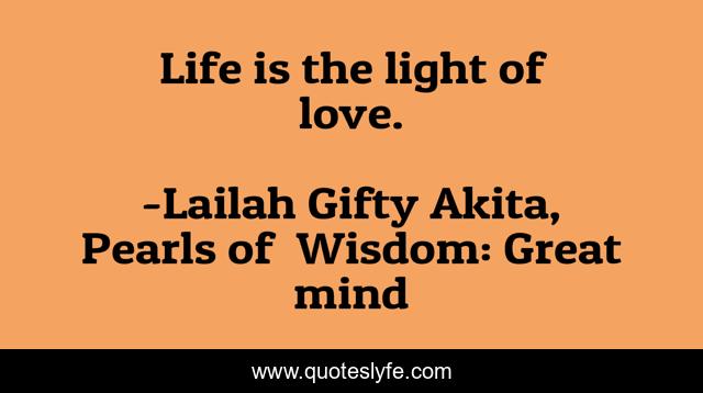 "Lailah Gifty Akita, Pearls of Wisdom: Great mind Quotes." Quoteslyfe.com, 2025. Sat. 06 Dec. 2025. <https://www.quoteslyfe.com/quote/Life-is-the-light-of-love-118573>.