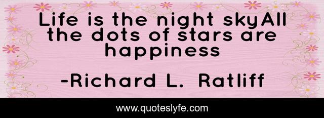 This page presents the quote "Life is the night skyAll the dots of stars are happiness". Author of this quote is Richard L. Ratliff. This quote is about dots, life, beauty, sky, wise-words, night, night-stars, happiness,.