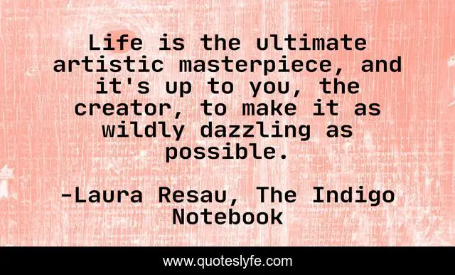 "Laura Resau, The Indigo Notebook Quotes." Quoteslyfe.com, 2025. Mon. 08 Dec. 2025. <https://www.quoteslyfe.com/quote/Life-is-the-ultimate-artistic-masterpiece-and-116376>.