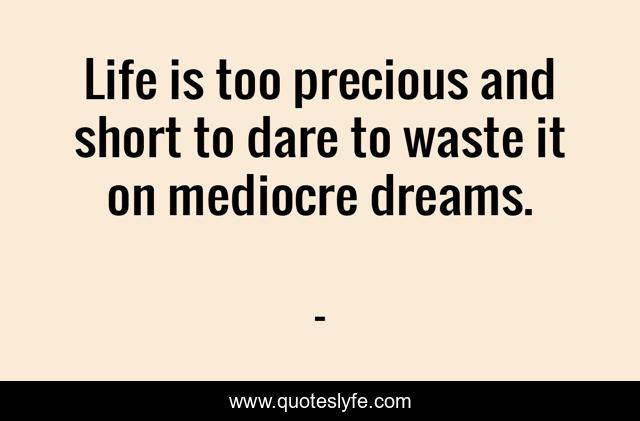 This page presents the quote "Life is too precious and short to dare to waste it on mediocre dreams.". Author of this quote is . This quote is about life, dream-big, edmond-mbiaka, life-is-short, life-is-precious, mediocre, precious, dreams,.