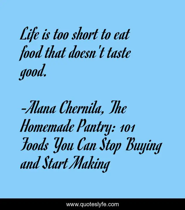 "Alana Chernila, The Homemade Pantry: 101 Foods You Can Stop Buying and Start Making Quotes." Quoteslyfe.com, 2025. Sat. 06 Dec. 2025. <https://www.quoteslyfe.com/quote/Life-is-too-short-to-eat-food-168379>.