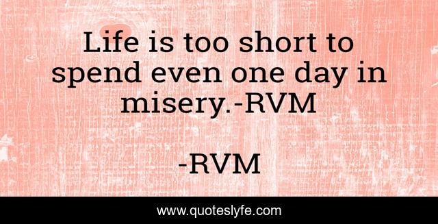This page presents the quote "Life is too short to spend even one day in misery.-RVM". Author of this quote is RVM. This quote is about motivation, inspiration,.