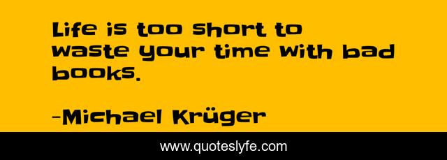This page presents the quote "Life is too short to waste your time with bad books.". Author of this quote is Michael Krüger. This quote is about book-reading, reading-books, books, reading, reading-habits,.