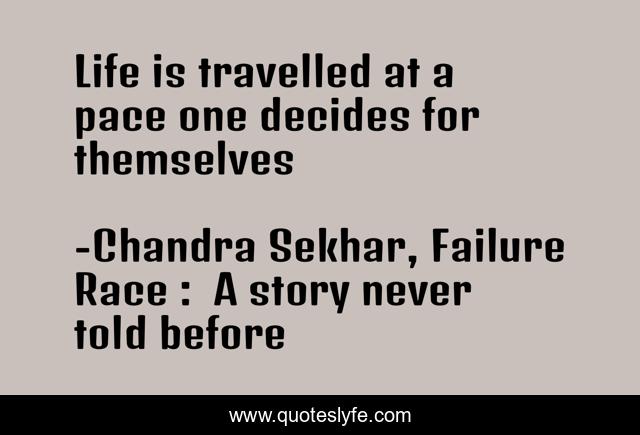 "Chandra Sekhar, Failure Race : A story never told before Quotes." Quoteslyfe.com, 2025. Mon. 08 Dec. 2025. <https://www.quoteslyfe.com/quote/Life-is-travelled-at-a-pace-one-93804>.