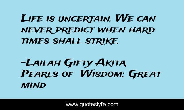 "Lailah Gifty Akita, Pearls of Wisdom: Great mind Quotes." Quoteslyfe.com, 2025. Fri. 05 Dec. 2025. <https://www.quoteslyfe.com/quote/Life-is-uncertain-We-can-never-predict-183793>.