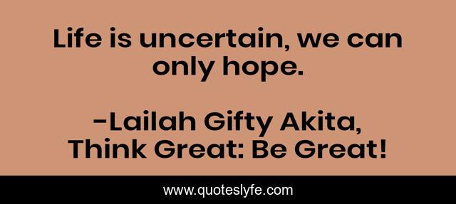 "Lailah Gifty Akita, Think Great: Be Great! Quotes." Quoteslyfe.com, 2025. Fri. 05 Dec. 2025. <https://www.quoteslyfe.com/quote/Life-is-uncertain-we-can-only-hope-98800>.