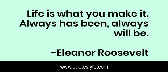 "Eleanor Roosevelt Quotes." Quoteslyfe.com, 2025. Fri. 05 Dec. 2025. <https://www.quoteslyfe.com/quote/Life-is-what-you-make-it-Always-253204>.