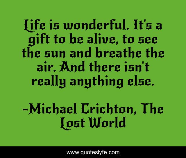 This page presents the quote "Life is wonderful. It's a gift to be alive, to see the sun and breathe the air. And there isn't really anything else.". Author of this quote is Michael Crichton, The Lost World. .