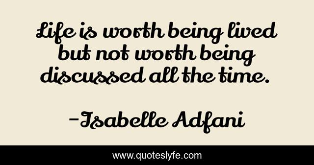 This page presents the quote "Life is worth being lived but not worth being discussed all the time.". Author of this quote is Isabelle Adfani. This quote is about going, getting,.