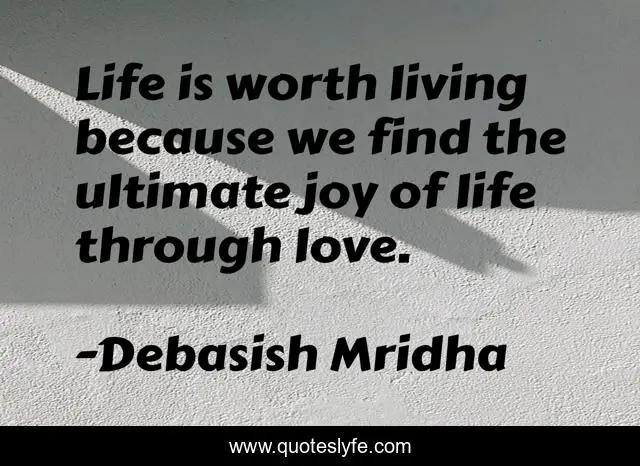 This page presents the quote "Life is worth living because we find the ultimate joy of life through love.". Author of this quote is Debasish Mridha. This quote is about philosophy, debasish-mridha, quotes, find-the-ultimate-joy-of-life, debasish-mridha-md, inspirational, enthusiasm, life-and-love, ultimate-joy,.