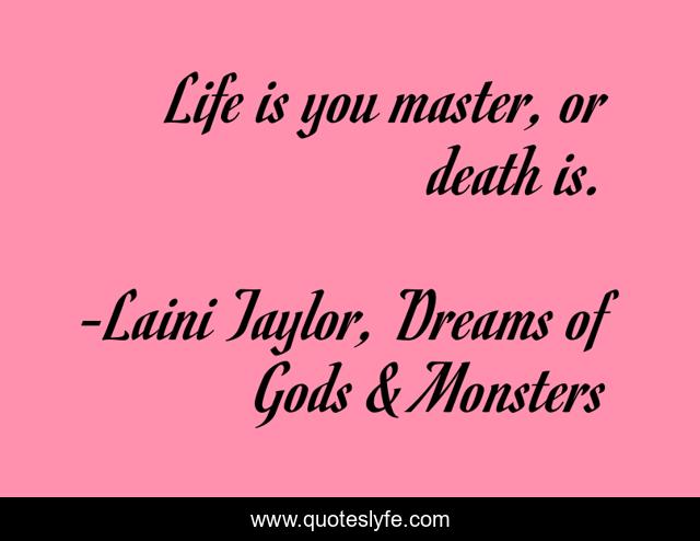 "Laini Taylor, Dreams of Gods & Monsters Quotes." Quoteslyfe.com, 2025. Fri. 05 Dec. 2025. <https://www.quoteslyfe.com/quote/Life-is-you-master-or-death-is-159920>.
