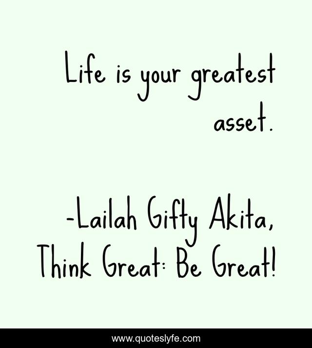 "Lailah Gifty Akita, Think Great: Be Great! Quotes." Quoteslyfe.com, 2025. Sat. 06 Dec. 2025. <https://www.quoteslyfe.com/quote/Life-is-your-greatest-asset-78430>.