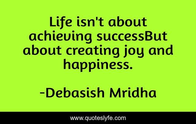 This page presents the quote "Life isn't about achieving successBut about creating joy and happiness.". Author of this quote is Debasish Mridha. This quote is about life, love, knowledge, success, inspirational, intelligence, create, philosophy, affection,.