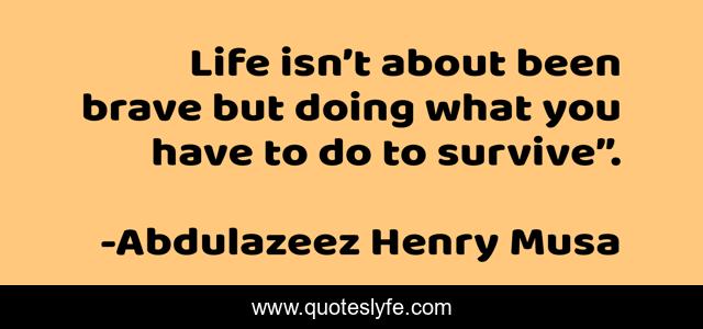 This page presents the quote "Life isn’t about been brave but doing what you have to do to survive”.". Author of this quote is Abdulazeez Henry Musa. .