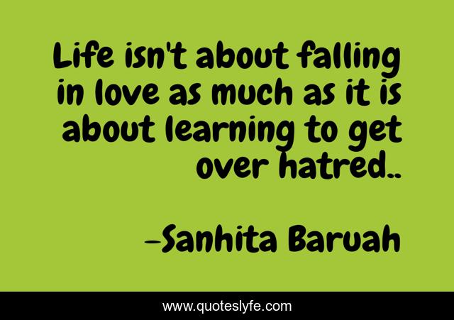 Life isn't about falling in love as much as it is about learning to get over hatred..