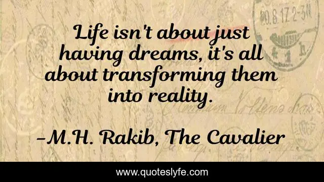 "M.H. Rakib, The Cavalier Quotes." Quoteslyfe.com, 2025. Fri. 05 Dec. 2025. <https://www.quoteslyfe.com/quote/Life-isn-t-about-just-having-dreams-94359>.