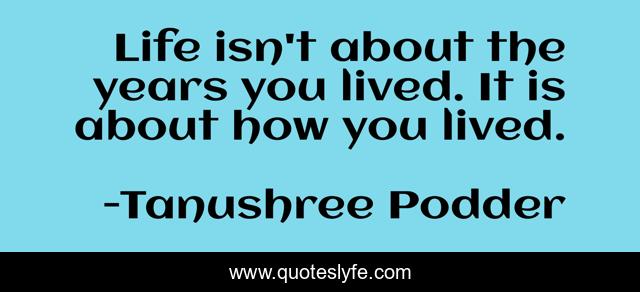 This page presents the quote "Life isn't about the years you lived. It is about how you lived.". Author of this quote is Tanushree Podder. This quote is about life, live, years,.