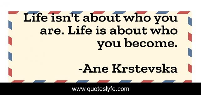 This page presents the quote "Life isn't about who you are. Life is about who you become.". Author of this quote is Ane Krstevska. This quote is about confidence, positive, motivational, optimistic, inspirational, enthusiasm,.