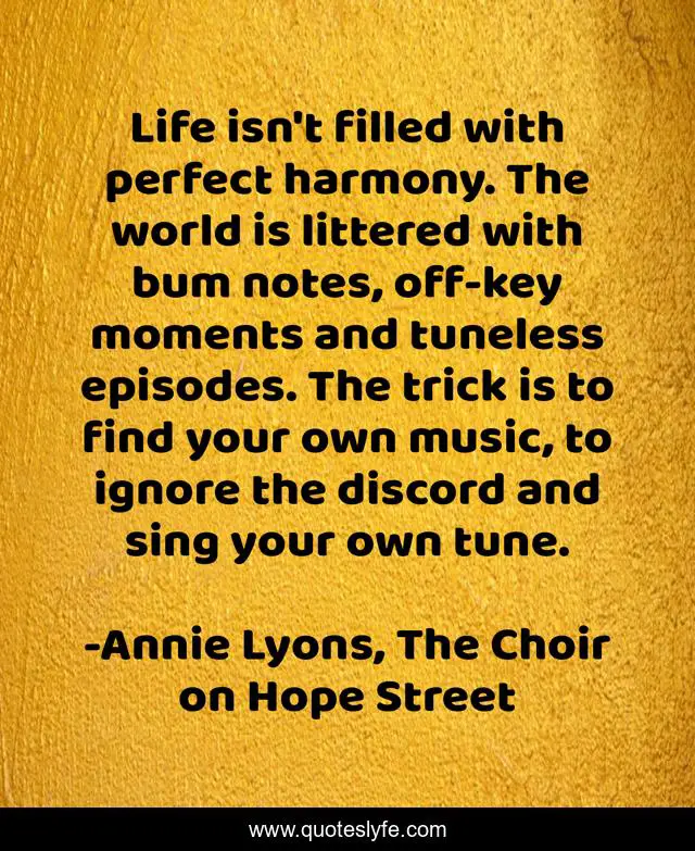 "Annie Lyons, The Choir on Hope Street Quotes." Quoteslyfe.com, 2025. Fri. 05 Dec. 2025. <https://www.quoteslyfe.com/quote/Life-isn-t-filled-with-perfect-harmony-37919>.