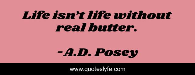 "A.D. Posey Quotes." Quoteslyfe.com, 2025. Sat. 06 Dec. 2025. <https://www.quoteslyfe.com/quote/Life-isn-t-life-without-real-butter-150953>.