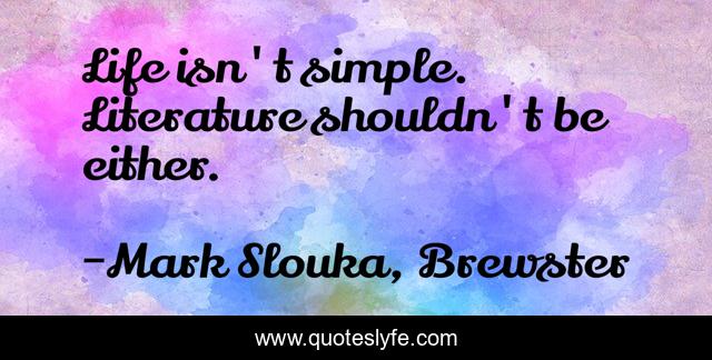 "Mark Slouka, Brewster Quotes." Quoteslyfe.com, 2025. Fri. 05 Dec. 2025. <https://www.quoteslyfe.com/quote/Life-isn-t-simple-Literature-shouldn-t-111793>.