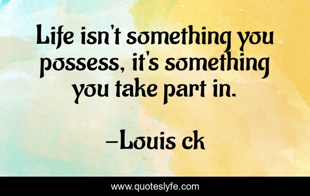 This page presents the quote "Life isn't something you possess, it's something you take part in.". Author of this quote is Louis ck. This quote is about life-lessons, wisdom,.