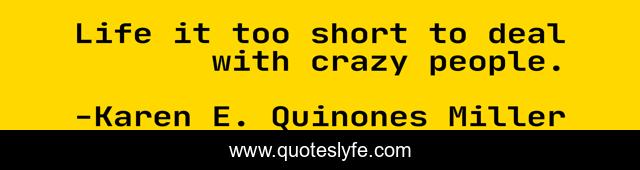This page presents the quote "Life it too short to deal with crazy people.". Author of this quote is Karen E. Quinones Miller. This quote is about sanity, patience, humor,.