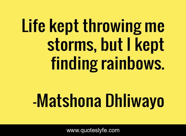 "Matshona Dhliwayo Quotes." Quoteslyfe.com, 2025. Fri. 05 Dec. 2025. <https://www.quoteslyfe.com/quote/Life-kept-throwing-me-storms-but-I-225322>.